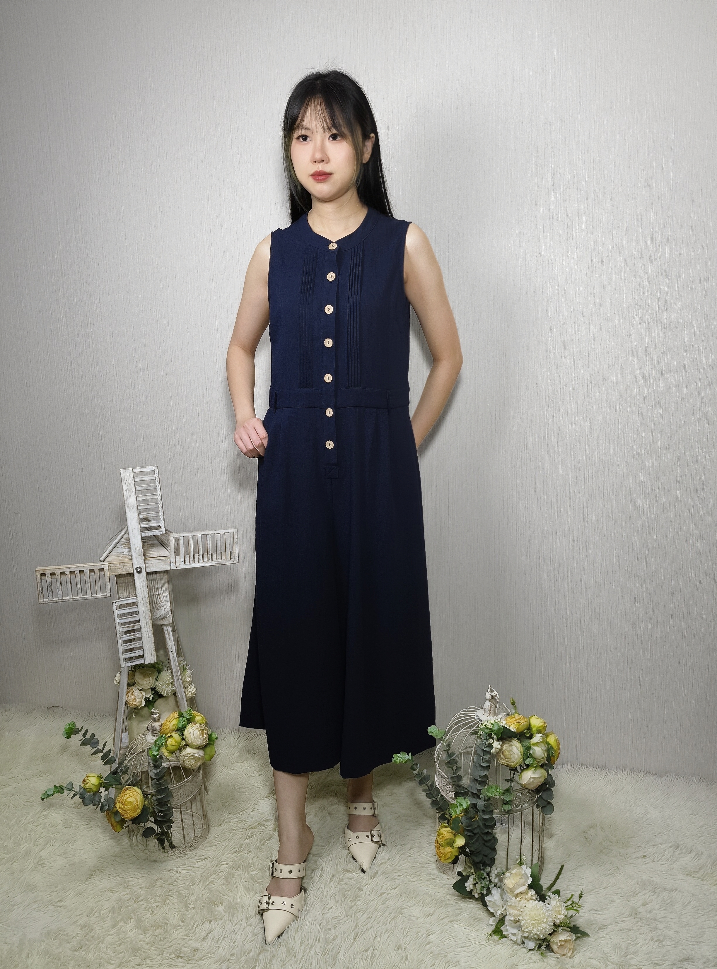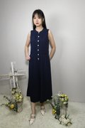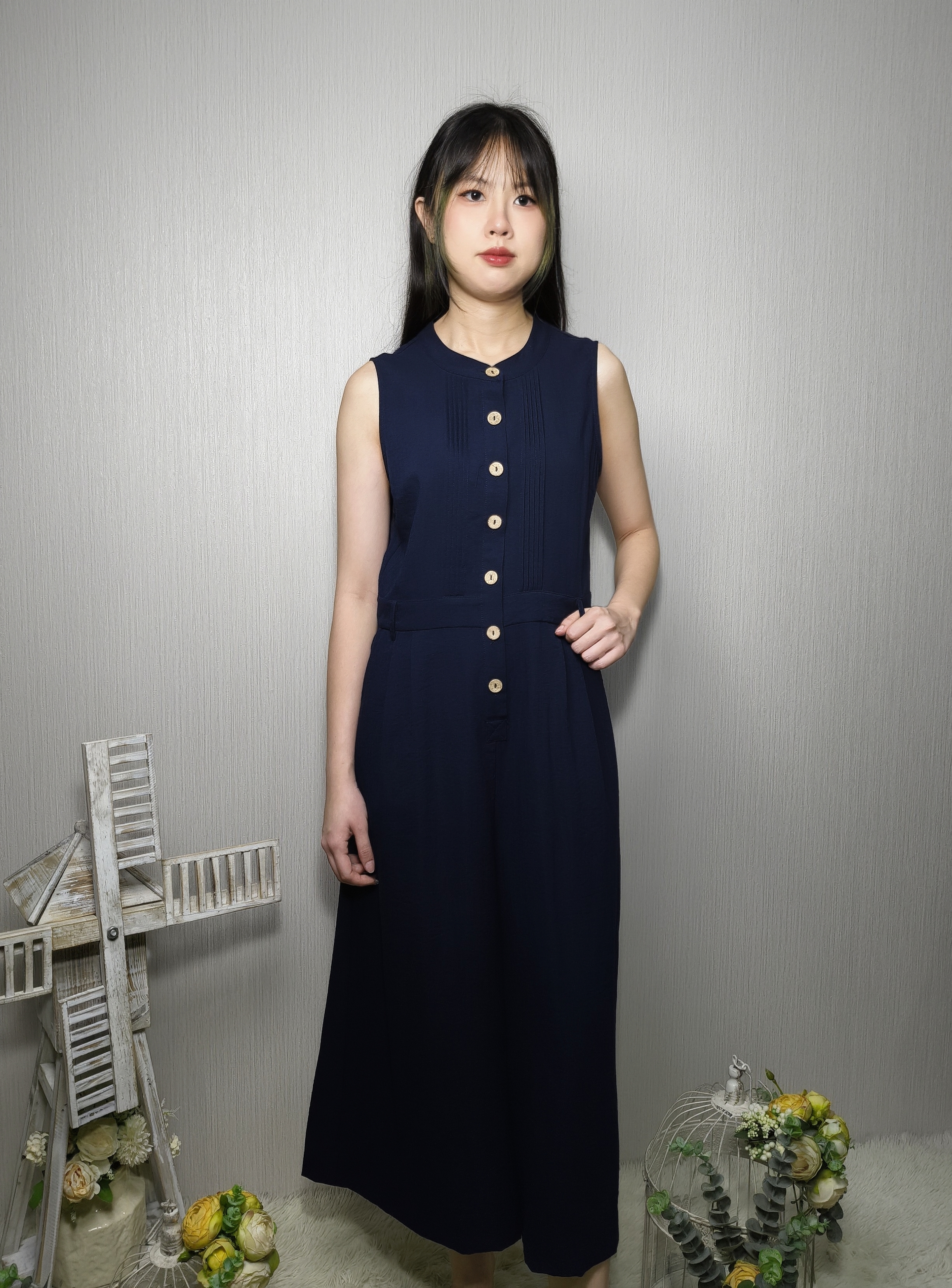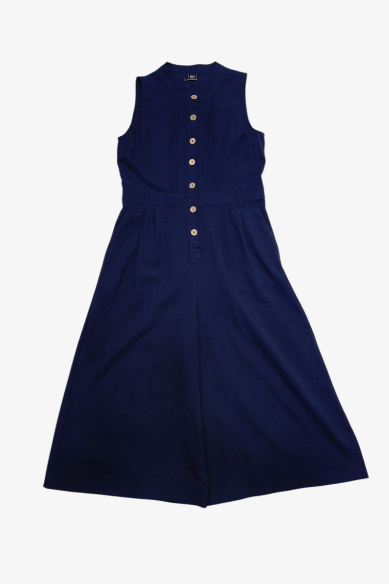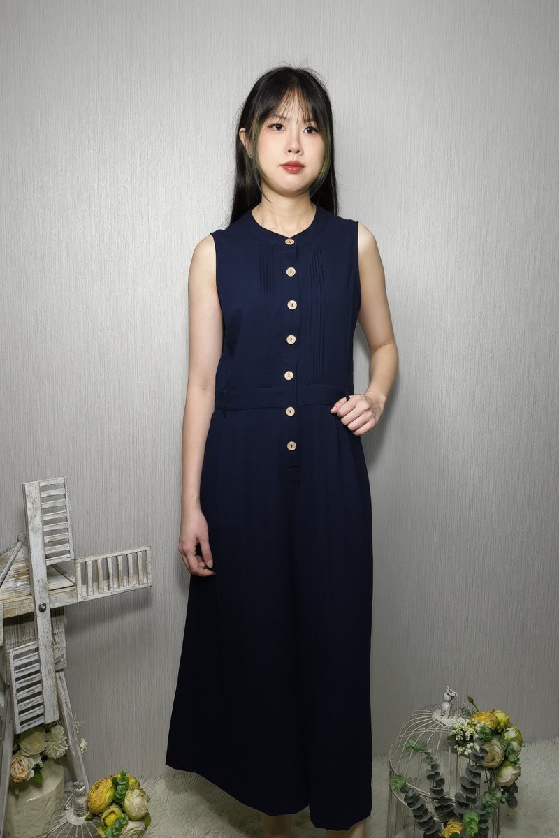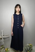 DAVINA TEXTURED SLEEVELESS BUTTON-DOWN JUMPSUIT (N-JS56751)